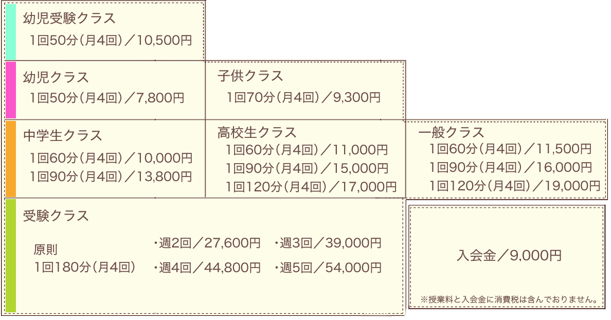 アートスクールアトリエ ニケ:各クラス授業料